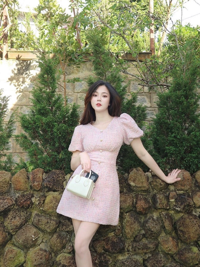 6. Đầm Tweed tay bồng phong cách tiểu thư