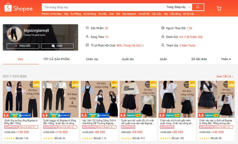 Bigsizegiareq8 là một shop đồ hot đáng chú ý dành cho cô nàng Chubby. Với cam kết cung cấp các sản phẩm thời trang chất lượng cao và giá cả hợp lý, shop này là địa chỉ mua sắm lý tưởng cho những người có kích cỡ lớn. Bigsizegiareq8 mang đến một loạt các kiểu dáng và mẫu mã phong phú, từ áo sơ mi, áo phông, quần jeans đến váy đầm và áo len. Chất liệu và cắt may của sản phẩm đều được chú trọng, giúp tạo nên sự thoải mái và tự tin cho cô nàng Chubby khi mặc.