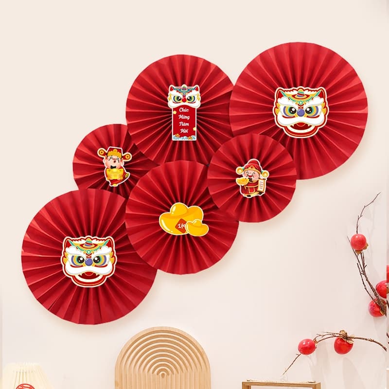- Set 6 quạt giấy đỏ trang trí Tết 2024