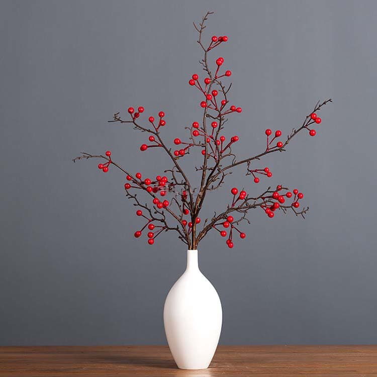 Đào đông đỏ là một trong những loại hoa tết cực kỳ phổ biển và dễ trang trí. Với sắc đỏ tươi tắn, lâu tàn, hoa mang lại không khí mới mẻ, khởi đầu năm mới an lành. Mỗi quả nhỏ là một điều may mắn, hoa xum xuê nảy lộc trên những nhành hoa khoe sắc. 1 nhánh gồm 12 quả, cuống kim loại mềm, dễ tạo hình cong theo ý muốn.
