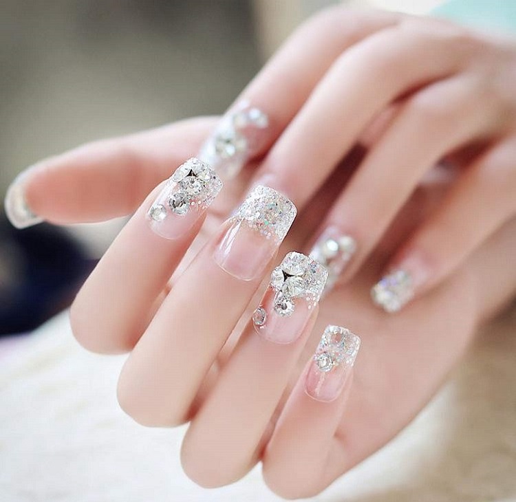 Mẫu nail đính kèm họa tiết lấp lánh là nét độc đáo, lấp lánh làm thu hút mọi ánh nhìn. Ngoài ra, bạn có thể tô điểm thêm cho bộ móng bằng cách vẽ thêm họa tiết hay hoa văn cho đầu móng thêm đặc sắc.