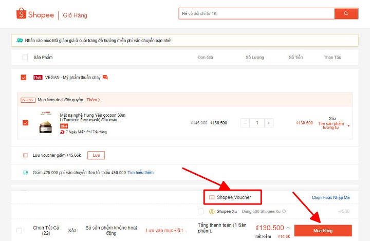 Cách mua mặt nạ nghệ kết hợp voucher giảm giá trên Shopee