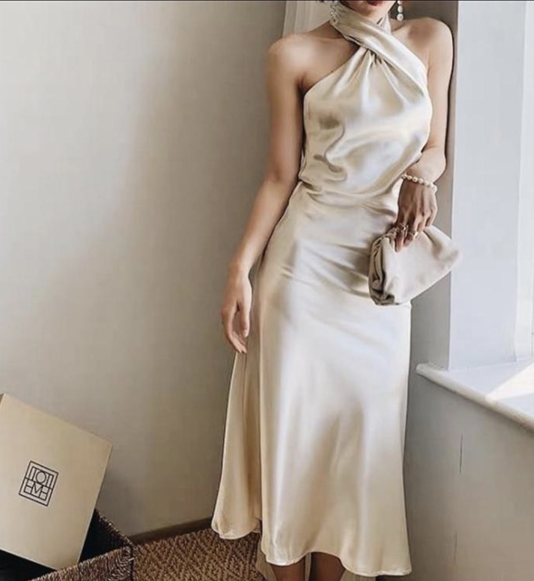 4. Váy 2 dây lụa satin trơn, eo xoắn siêu sexy