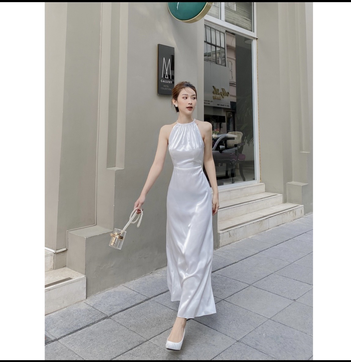 3. Đầm Body Cổ Yếm Vải Phi Lụa Cao Cấp Sang Trọng D01