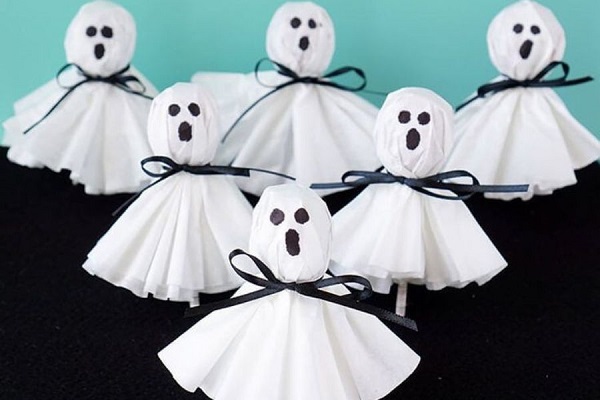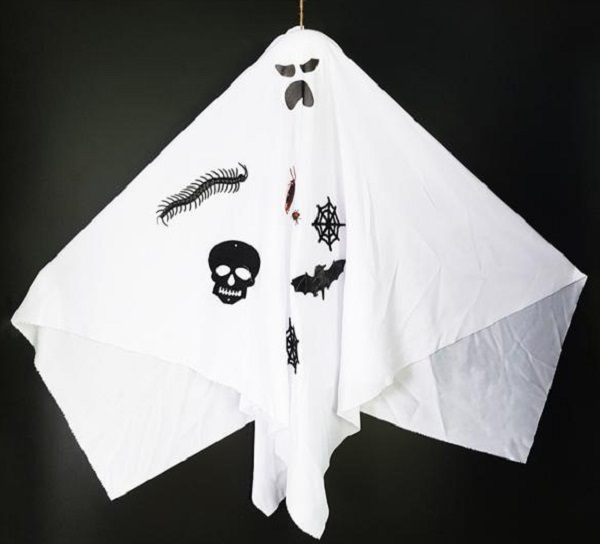 Con ma Boo, với gương mặt hài hước và đáng yêu, là biểu tượng không thể thiếu trong ngày Halloween. Bạn có thể tạo ra một con ma Boo lớn bằng vải mùng treo và treo nó ở cửa ra vào hoặc trong nhà. Với ánh sáng lồng lộn phát ra từ dưới, nó tạo ra một bóng ma kỳ quái trên tường, đem lại không khí vui vẻ và đáng sợ cho lễ hội.