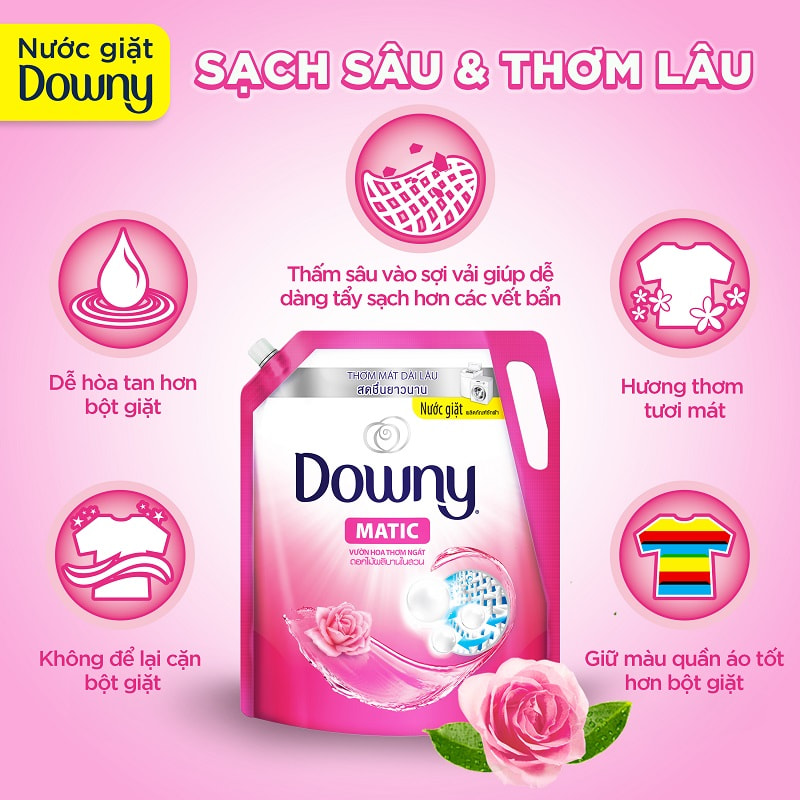 Downy với tiêu chí an toàn cho sức khỏe và sự mềm mại lưu hương của từng sợi vải. Nước giặt thành phần chính đều từ thiên nhiên và chiết xuất hương thơm từ các loại hoa đặc trưng. Áp dụng dây chuyền sản xuất tiên tiến tạo ra sản phẩm nước giặt Downy an toàn cho làn da và tránh gây kích ứng cho làn da nhạy cảm hiệu quả.