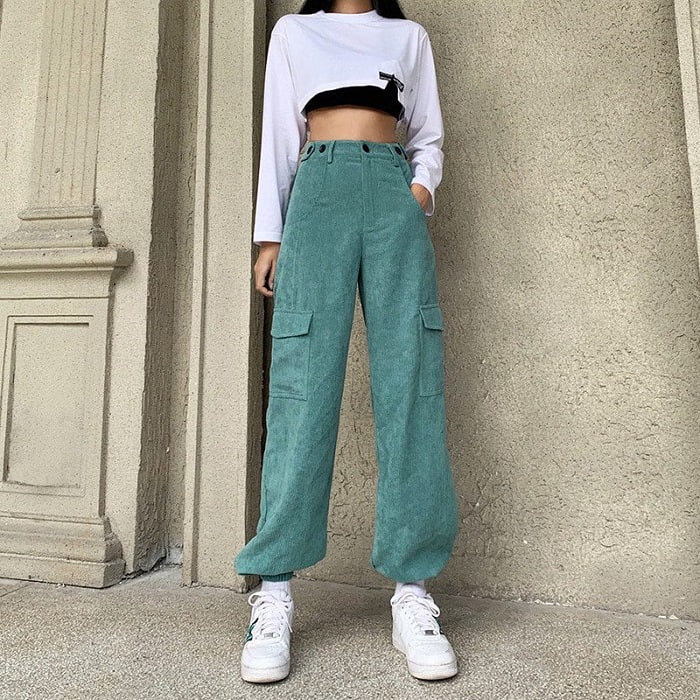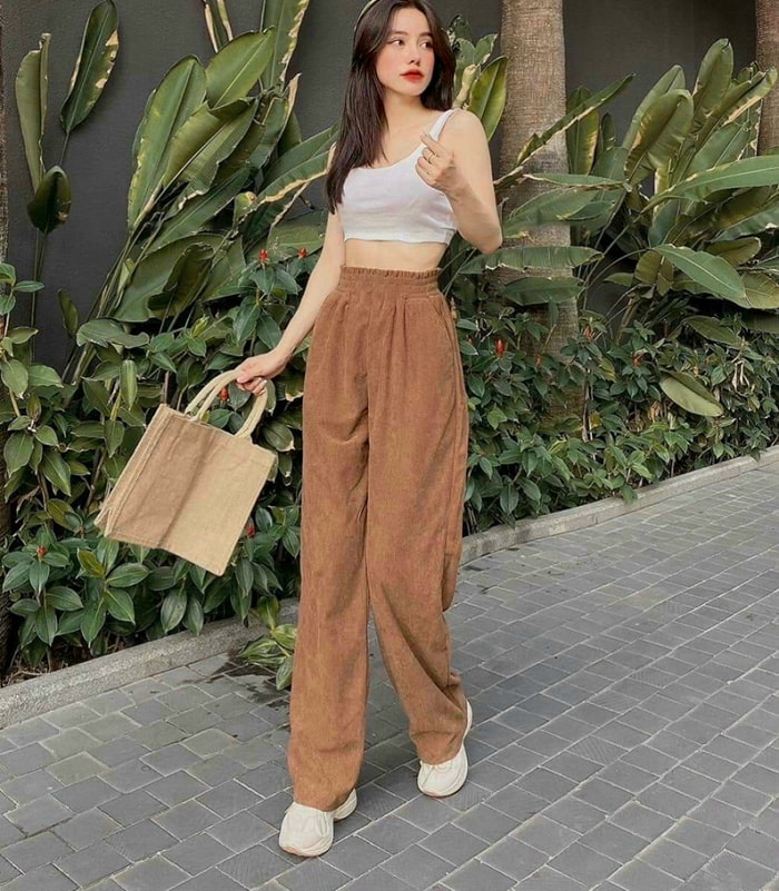 Những cô nàng có vòng eo đẹp thì việc diện áo croptop cùng quần nhung tăm sẽ làm nàng có gu hơn. Không những thế, khi chọn kết hợp áo croptop và quần nhung tăm, bạn có thể đi cùng giày sneaker nó sẽ giúp bạn vừa năng động nhưng lại chẳng kém phần quyến rũ, sexy.