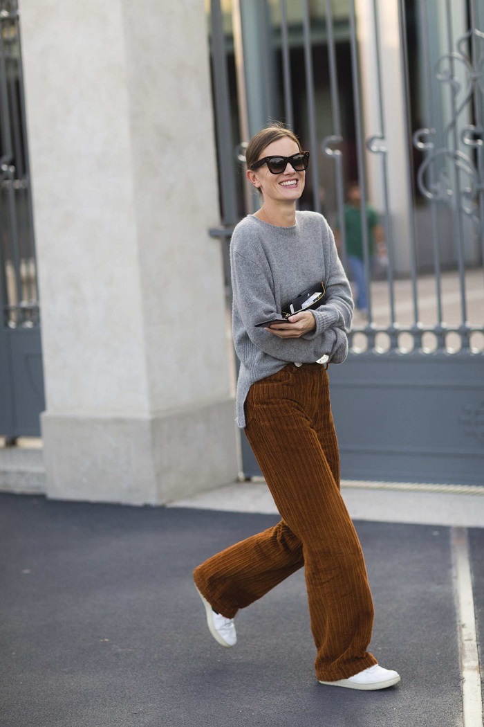 Chiếc quần nhung tăm cũng được bận khá nhiều ở những nơi có thời tiết lạnh. Chính vì thế bạn có thể chọn cho mình những chiếc áo len oversize hay croptop để vừa có thể giữ ấm mà còn có được sự mới lạ khi phối đồ. Chiếc áo len sẽ làm nàng trông nhẹ nhàng, nữ tính hơn.