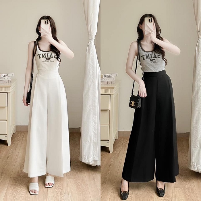 Quần ống rộng có nhiều kiểu dáng khác nhau như quần tây ống rộng, quần culottes, quần baggy,... phù hợp với nhiều phong cách thời trang đa dạng. Quần ống rộng có thể phối với nhiều loại áo khác nhau như áo thun, áo sơ mi, áo croptop,... tạo nên những outfit cá tính và thời thượng.