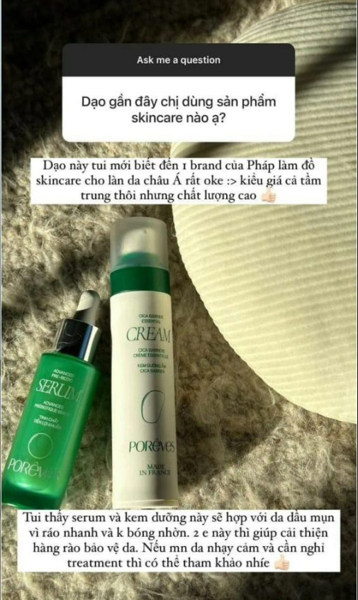 Mặc dù không quá nổi nhưng nếu để ý bạn sẽ thấy Porêves xuất hiện khá nhiều trong chu trình skincare của nhiều KOL đình đám như Thạch Trang, Tống Khánh Linh, Ben Nguyễn.. Do đó, đây hứa hẹn sẽ là ngôi sao sáng trong thị trường làm đẹp Việt thời gian tới.