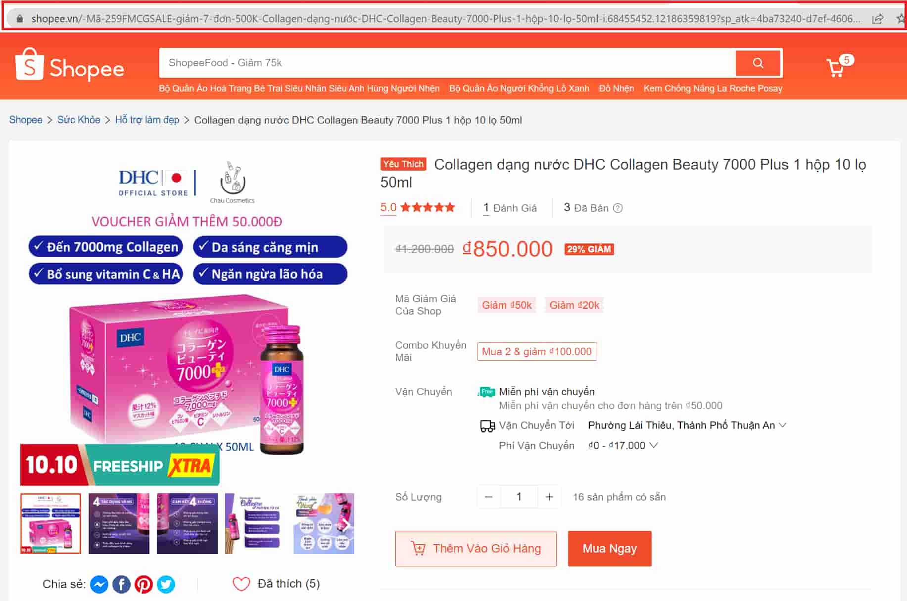 - Bước 1: Copy link sản phẩm collagen dạng nước DHC Beauty 7000 Plus trên Shopee