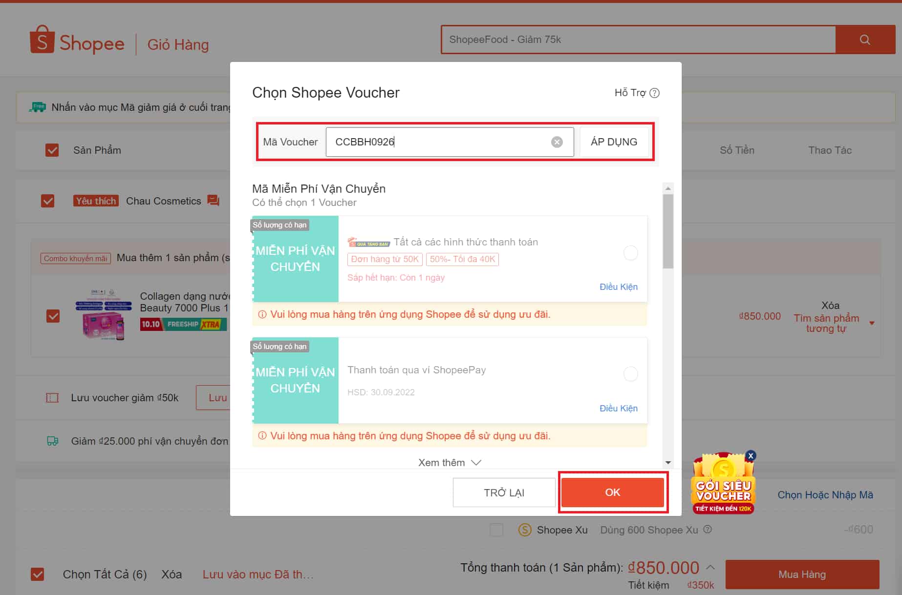 - Bước 3: Dán mã và thanh toán đơn hàng trên Shopee là hoàn thành.