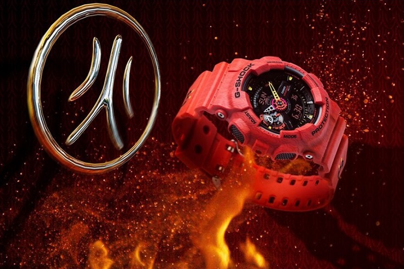 Màu sắc chủ đạo của chiếc đồng hồ này đến từ sắc đỏ của triết lý Ngũ Hành và Ngũ Thường của Trung Quốc. Sắc đỏ đã làm chiếc đồng hồ này thêm phần nổi bật nhưng vẫn giữ được chất “hầm hố” vốn có của G - Shock.