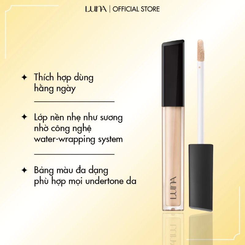 - Kem che khuyết điểm lâu trôi Luna LongLasting Tip Concealer Cover có chất kem mỏng nhẹ, dễ tán, giúp lớp nền trở nên tự nhiên và không bị dày cộp.