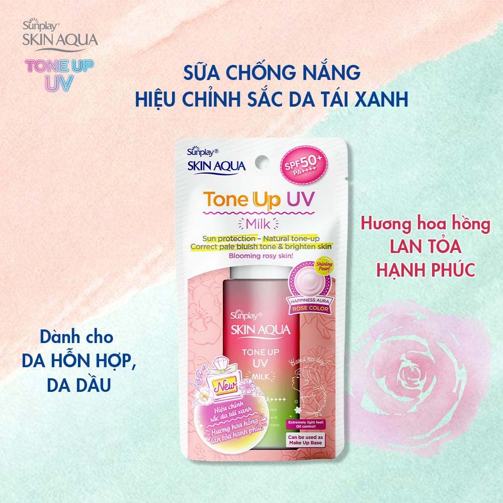2. Review chi tiết kem chống nắng Skin Aqua Tone Up UV Milk Happiness Aura