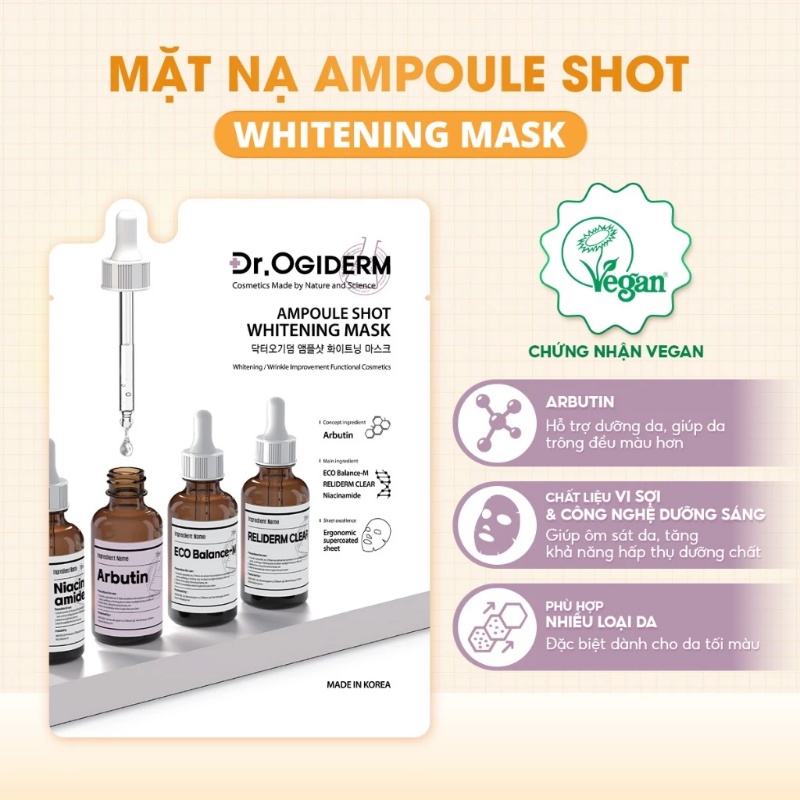 Mặt nạ vi sợi Dr.Ogiderm chứa nhiều thành phần dưỡng da an toàn và hiệu quả: