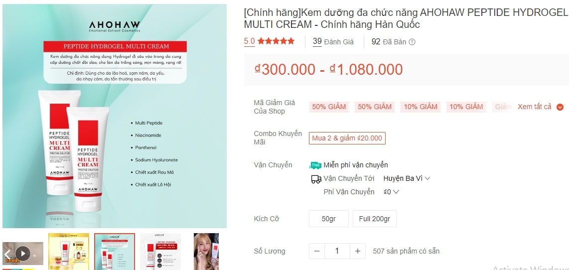 3.3. Kem dưỡng đa chức năng AHOHAW PEPTIDE HYDROGEL MULTI CREAM