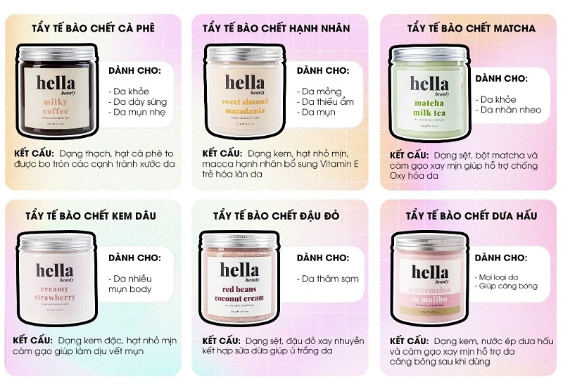 - Đa dạng sản phẩm: Hella Beauty cung cấp nhiều dòng sản phẩm khác nhau, từ dưỡng da, trang điểm đến chăm sóc cơ thể.