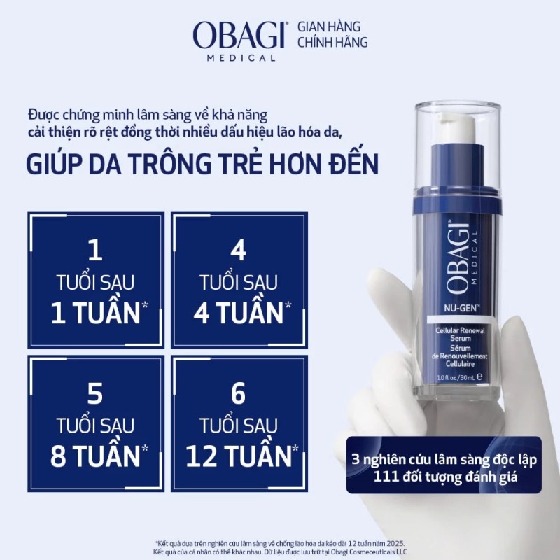 - Công nghệ trẻ hóa chuyên sâu: Serum trẻ hóa da cấp độ tế bào Obagi NU-GEN (Nugen) Cellular Renewal tập trung cải thiện làn da từ bên trong.