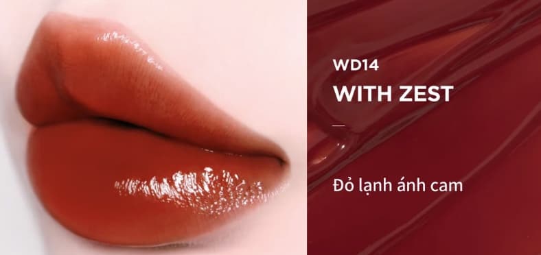 - WD14 (màu đỏ lạnh ánh cam): Nhìn màu tựa như sắc của trái táo đỏ rất cá tính. Em này có thể nói là “best seller” trong version 3 bởi không hề kén chọn tone da, da ngăm hay da trung bình đều có thể dùng mà lại cực kỳ tôn da.