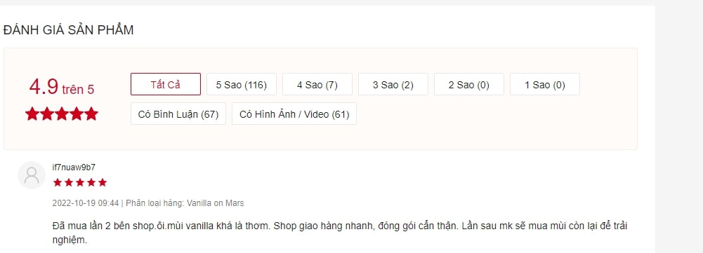 Đánh giá 4.9/5* của khách hàng trên Shopee về sữa tắm Scented Brightening Body Cleanser 300ml