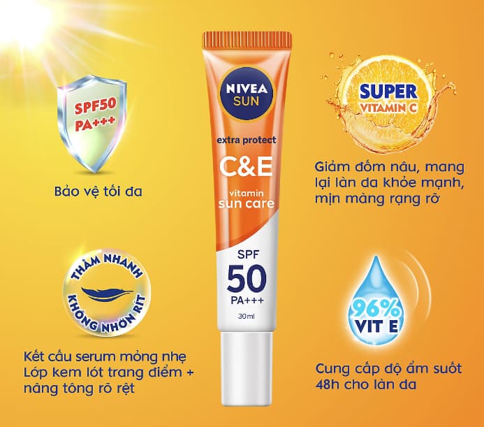 Tương tự như các loại chống nắng dạng kem đặc, tinh chất chống nắng Nivea cũng chứa các thành phần chống nắng cần thiết để bảo vệ da như chỉ số chống nắng SPF, PA,....Nhưng chúng là kết cấu dạng lỏng nên sẽ dễ thẩm thấu vào da hơn, đặc biệt là rất phù hợp cho những ngày hè với cái nắng gay gắt.