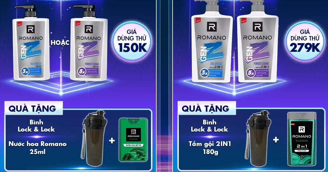 Điểm nổi bật của sữa tắm gội Romano 2 trong 1 Gen Z:
