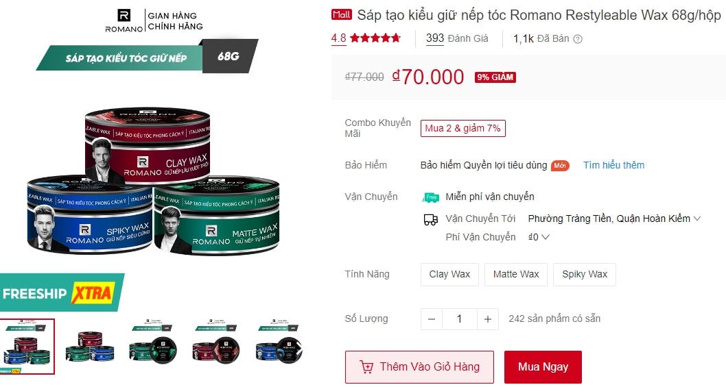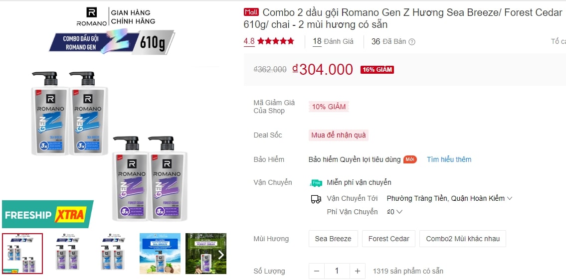 - Bước 3: Săn mã giảm giá, Voucher từ Romano và Shopee rồi lưu hoặc sử dụng ngay.