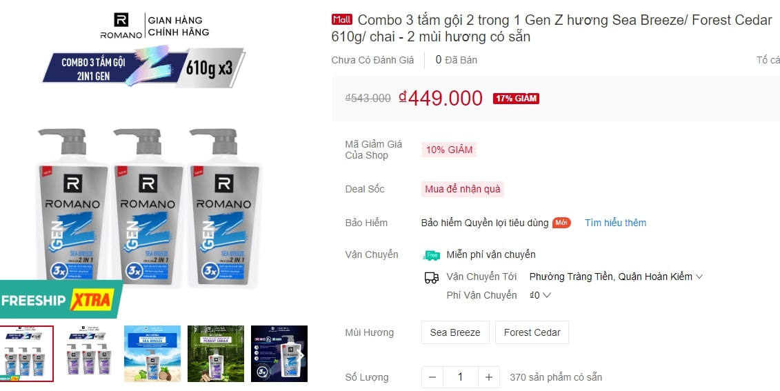 3.1. Combo 2 dầu gội đầu Romano Gen Z hương Sea Breeze/ Forest Cedar 610g