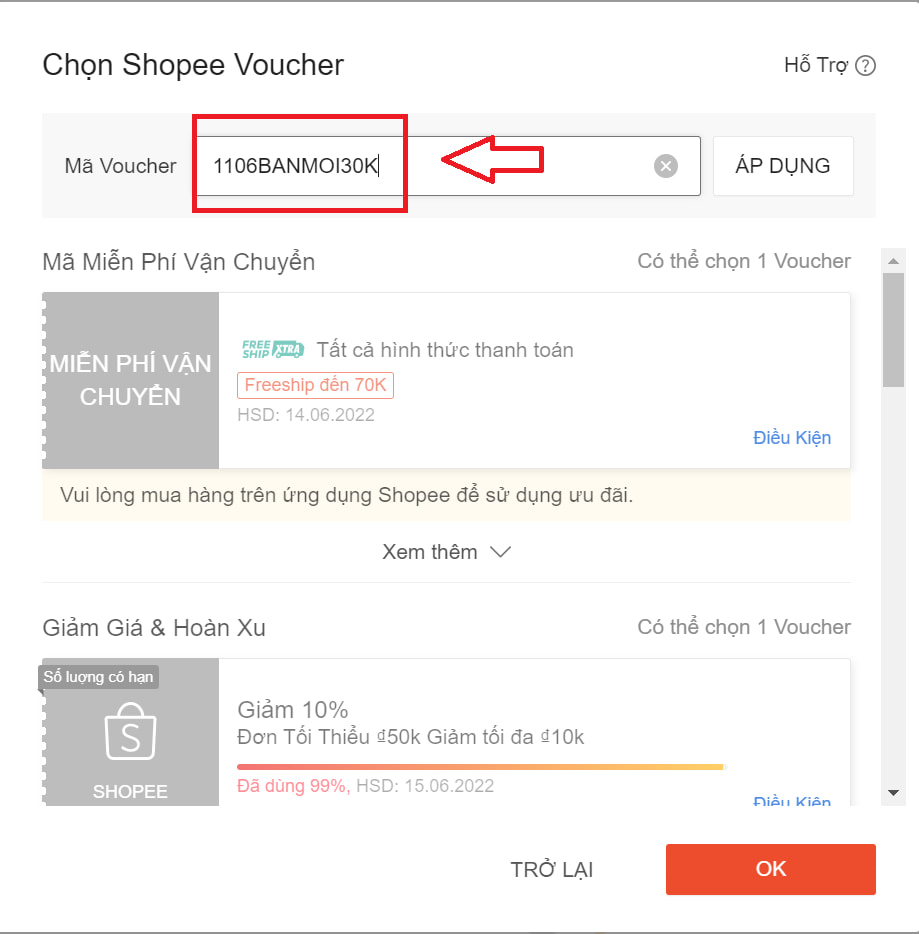 - Bước 3: Dán mã và thanh toán đơn hàng trên Shopee.