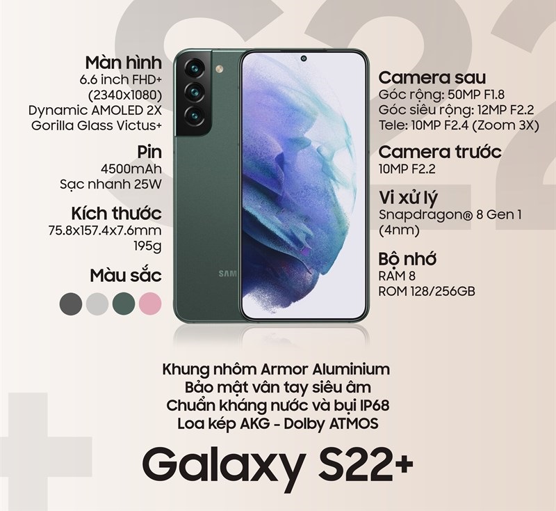 Chi tiết thông số kỹ thuật của mẫu Samsung Galaxy S22+