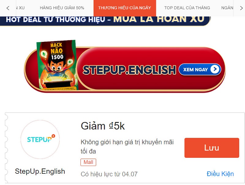 Dịp 7.7 này bạn có thể vào thương hiệu hot nhất ngày STEPUP.ENGLISH để mua các món hàng với giá ưu đãi.