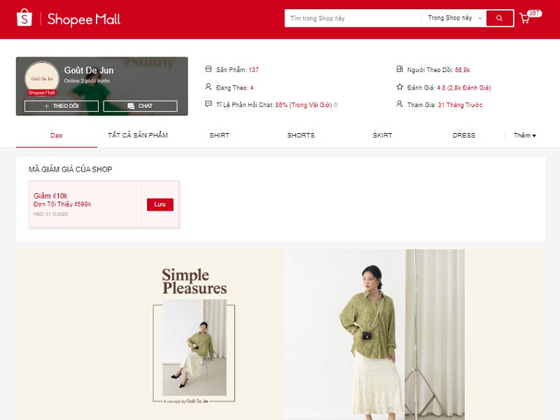 Đây là thương hiệu thời trang thiết kế ra đời từ năm 2016. Các bạn nữ yêu thích sự nữ tính nhưng vẫn thật phá cách và đầy cá tính thì Goût De Jun luôn làm bạn hài lòng. Những thiết kế vừa tôn được vẻ đẹp rất riêng của bản thân của đem đến sự thoải mái, trẻ trung, năng động. Những mẫu thiết kế quần ống rộng của shop mang lại vẻ đẹp và tôn dáng cho người mặc. Đường nét tinh tế, sang trọng phù hợp với rất nhiều hoàn cảnh trong cuộc sống. Từ đó cho thấy được tính ứng dụng cao cho những sản phẩm của shop.