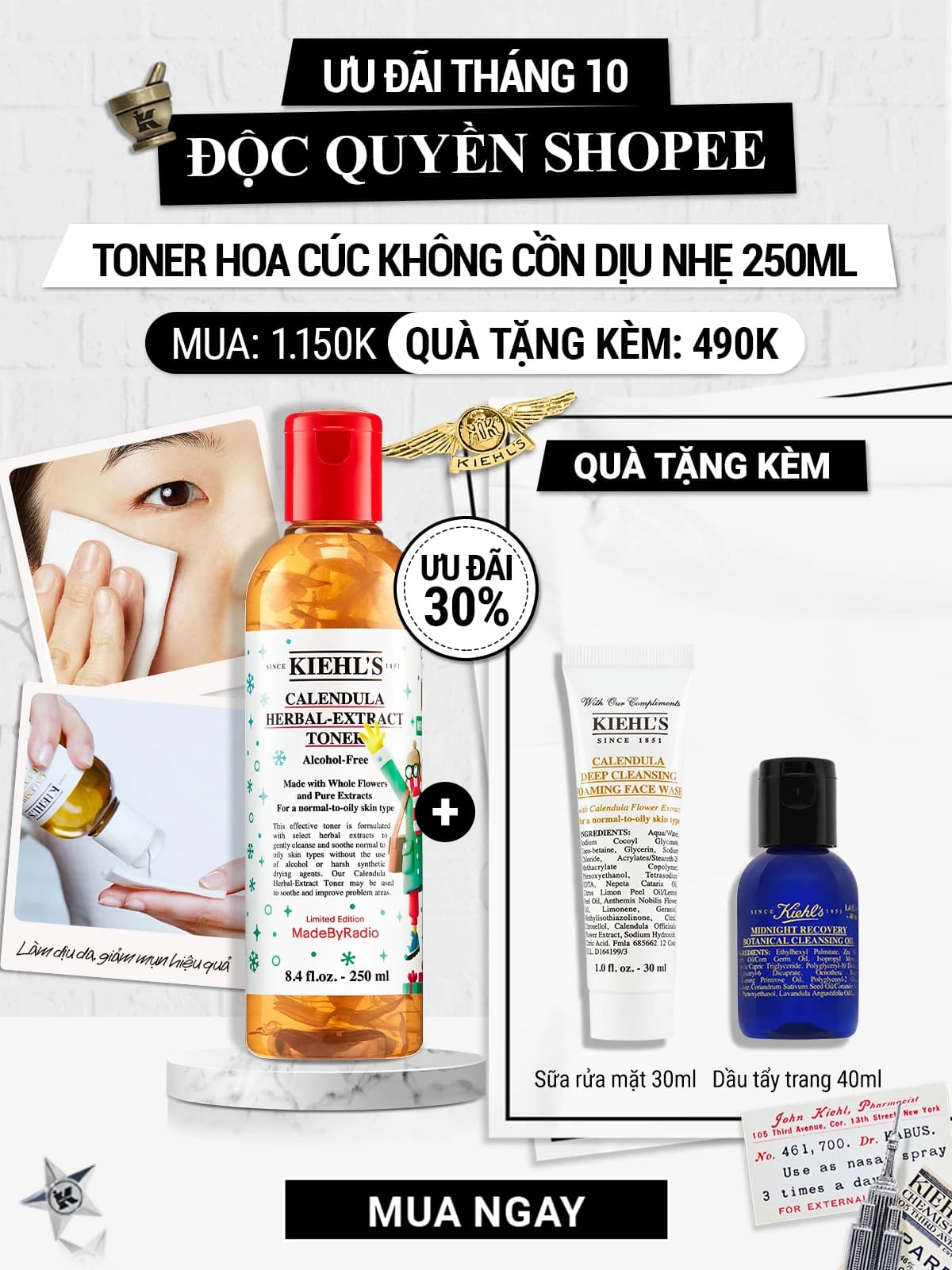 - Kiehl's tặng bạn quà trị giá 330K mọi đơn (dành cho 300 đơn đầu tiên).