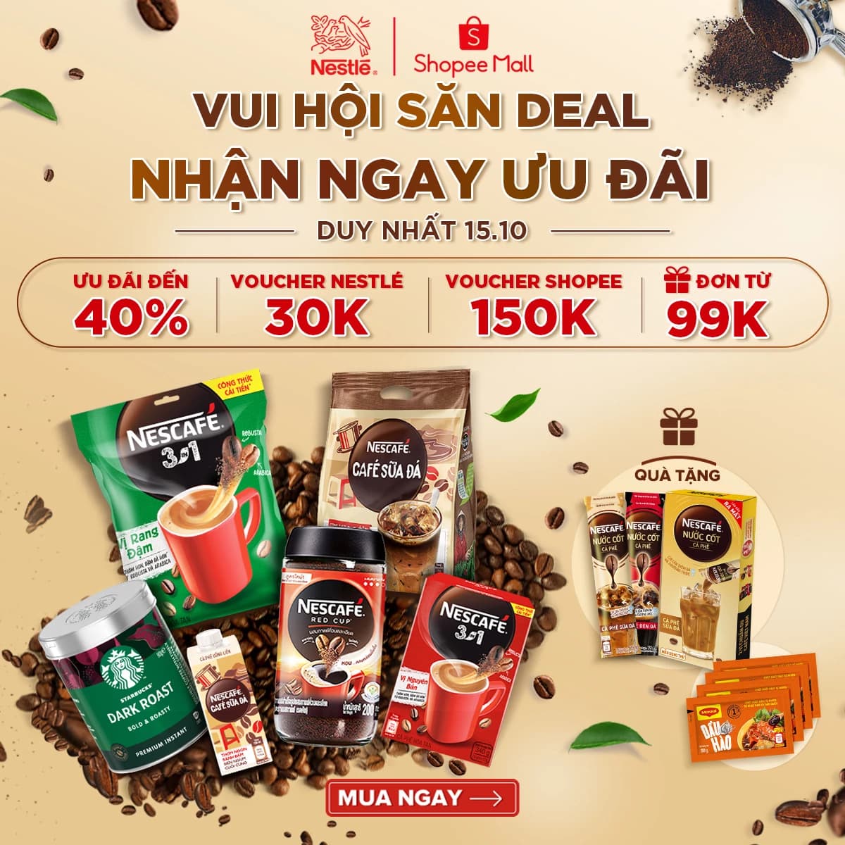 - Duy nhất 15.10: ưu đãi đến 40%, voucher Nestle 30K, voucher Shopee 150K.
