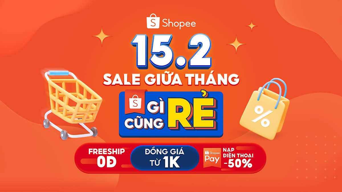 Bạn có thể tham khảo chi tiết sự kiện Shopee Sale 15.2 TẠI ĐÂY!