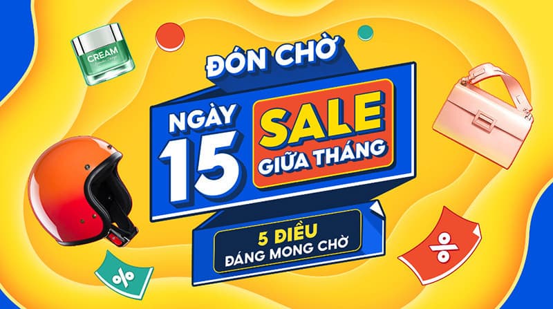 - Ngày 15 Sale giữa tháng, nhận ngay 15 voucher freeship, mua gì cũng rẻ.