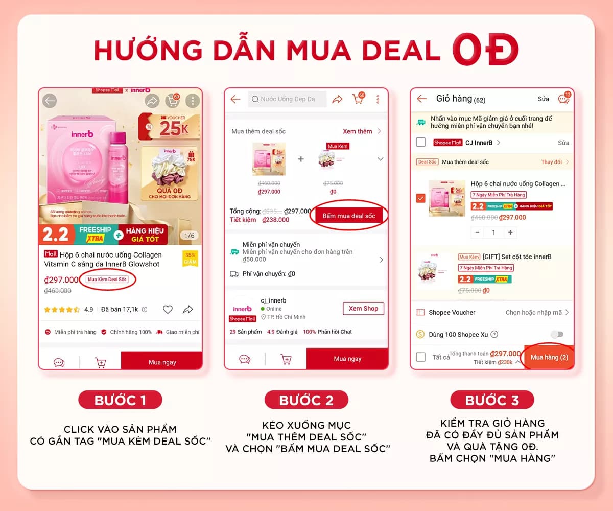 Bên cạnh đó, bạn còn có thể mua deal 0Đ tại gian hàng InnerB thao các bước sau:
