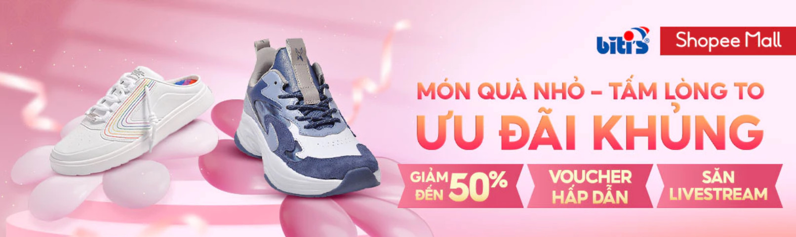 Ưu đãi giữa tháng lần này đồng thời cũng trùng vào dịp ra mắt BST “Biti’s Hunter Street”, vậy nên Biti’s quyết tâm chơi lớn đem đến cho khách hàng không chỉ deal khủng giảm tới 50% mà còn có cả quà tặng lên tới 450k chưa kể các voucher đi kèm khác. Truy cập gian hàng, khám phá ngay kẻo lỡ deal bạn nhé.