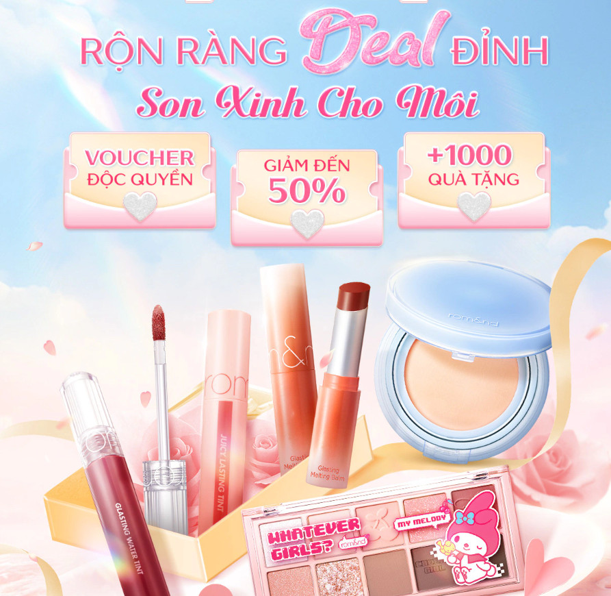 Với các tín đồ mê son và yêu làm đẹp thì chắc chắn bạn sẽ không thể không biết Romand - một brand chuyên về son môi cùng các sản phẩm trang điểm nổi tiếng của Hàn. Tới với siêu sale 15.3 tại Shopee, thương hiệu này không chỉ đem tới các deal giảm sâu về son mà còn có cả phấn má, phấn mắt, chì viền môi, cushion… cũng được giá hời nữa. Mua càng nhiều giá càng giảm, tranh thủ mua ngay.