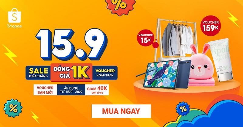 Mã giảm giá toàn sàn mà bạn sẽ nhận được trong đợt sale 15.9 này là: