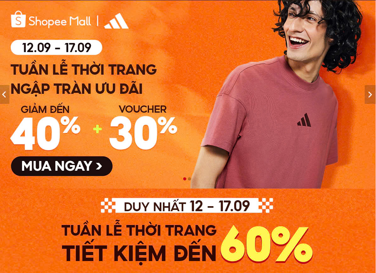 Nhưng riêng tới 15.9, nằm trong khuôn khổ tuần lễ thời trang Shopee, Adidas đã chơi lớn giảm giá tới 40% kèm thêm cả voucher 30% khi mua hàng nữa, tính ra là siêu hời cho một thương hiệu toàn cầu đang trend hiện tại. Chương trình sẽ áp dụng cho toàn bộ sản phẩm giày dép, quần áo và phụ kiện thể thao đang có mặt tại gian hàng. Cơ hội mua sắm Adidas giá rẻ chỉ có ở Shopee đợt này, nhớ vào lưu deal không hết bạn ơi.