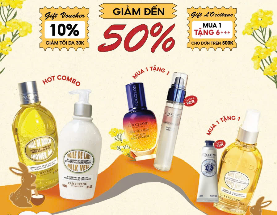 Tới với Shopee 15.9, L'Occitane mang đến ưu đãi giảm tới 50%, deal mua 1 tặng 6 và Gift Voucher 10%. Với một thương hiệu high-end thì mức giảm trên là quá sâu rồi, vậy nên nếu yêu thích L'Occitane thì đừng bỏ qua cơ hội mua sắm đợt này nhé.