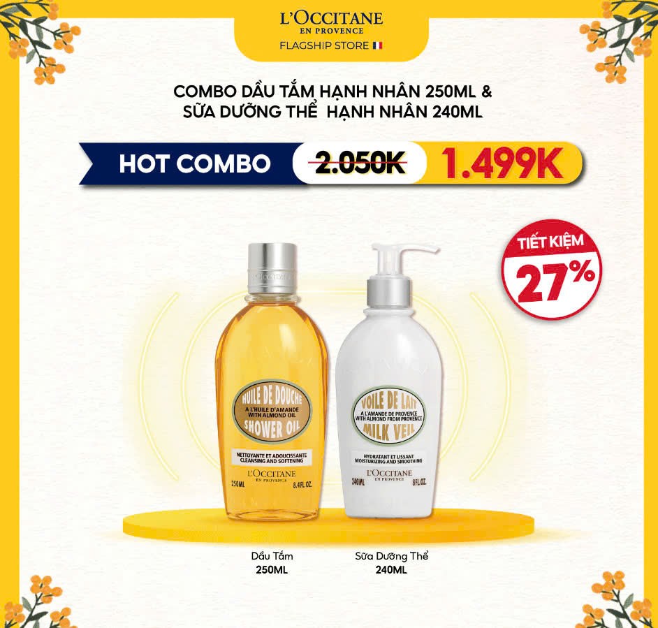 - Combo Dầu tắm Hạnh Nhân 250ml & Sữa dưỡng thể Hạnh Nhân 240ml L'Occitane Almond Milk