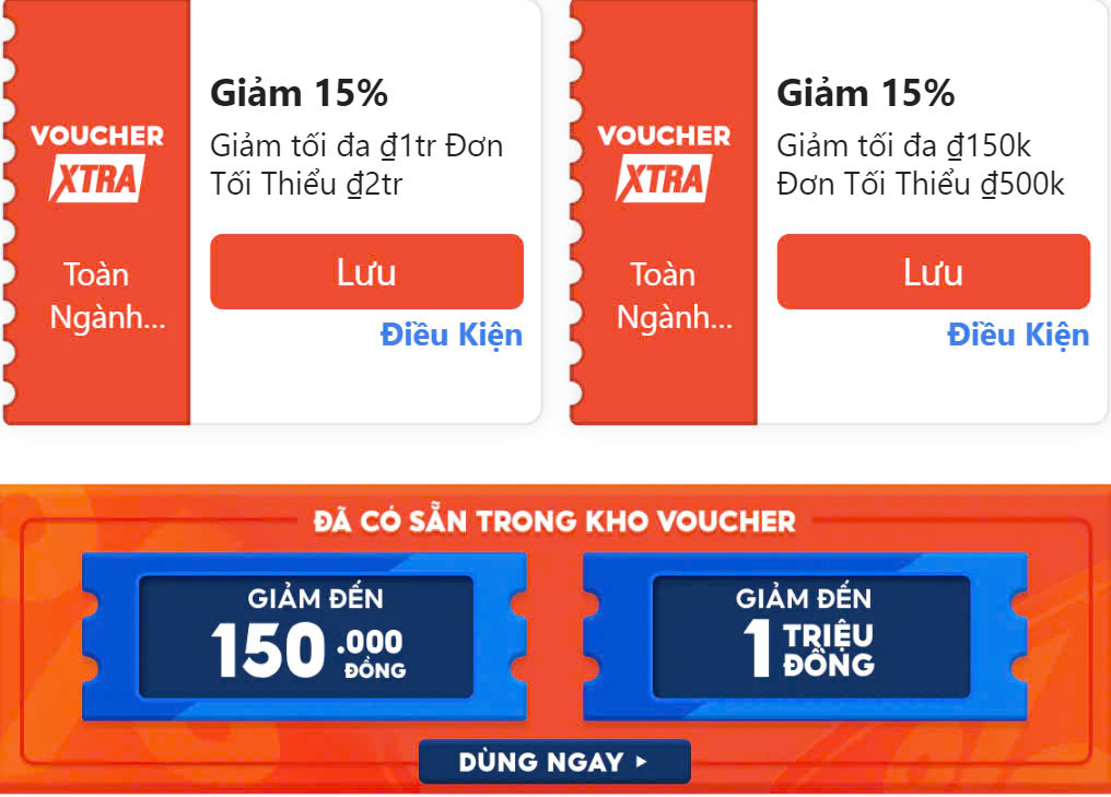 Chi tiết về các voucher, điều kiện sử dụng, bạn có thể NHẤN VÀO ĐÂY để xem.