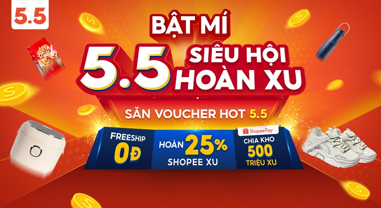 Chỉ duy nhất ngày 5.5 trong tháng, Shopee tung hàng triệu xu cùng hàng triệu ưu đãi từ mã giảm giá, mã freeship và cả quà tặng cho khách hàng. Đặc biệt, bạn sẽ nhận được cơ hội từ chương trình hoàn 25% giá trị xu cho đơn hàng từ 0đ.