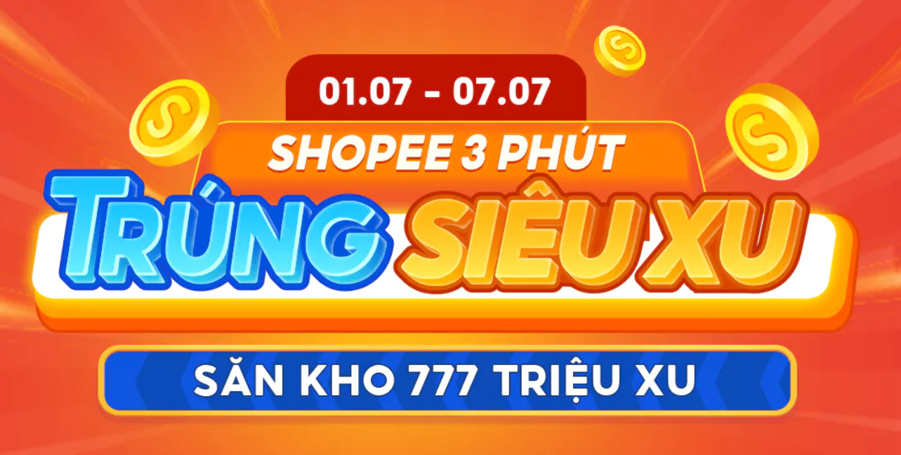 Cơ hội săn tới 777 triệu xu, bạn có muốn thử? Nếu có thì đừng bỏ sự kiện “3 Phút – Trúng siêu xu” của Shopee trong tháng 7 này nhé.