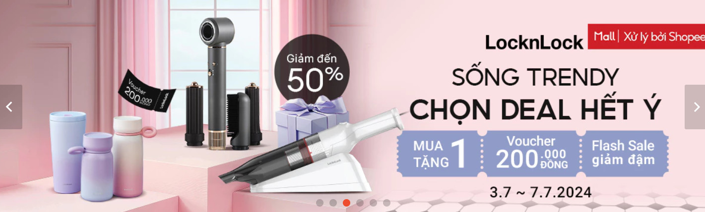Tới Shopee 7.7, LocknLock đem tới các deal Flash Sale đậm với hơn 50% giá, mua 1 tặng 1, voucher giảm 200k.. Chương trình chỉ diễn ra từ 3.7 đến hết 7.7, nên hãy nhanh tay vào mua sớm.