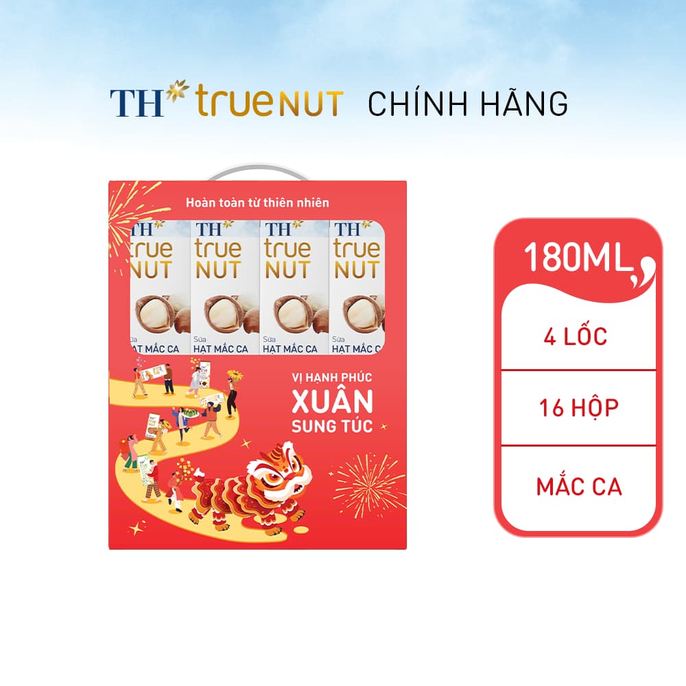 Combo Hộp quà Tết 4 lốc Sữa hạt mắc ca TH true Nut