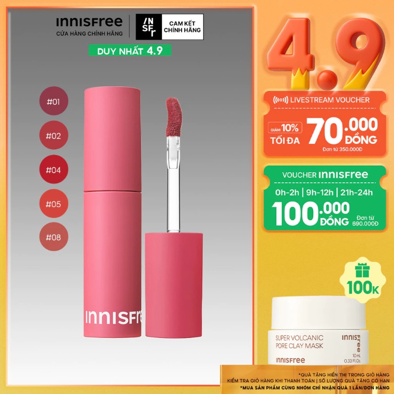 Son tint dạng lì siêu nhẹ môi innisfree Airy Matte Tint 3.8g